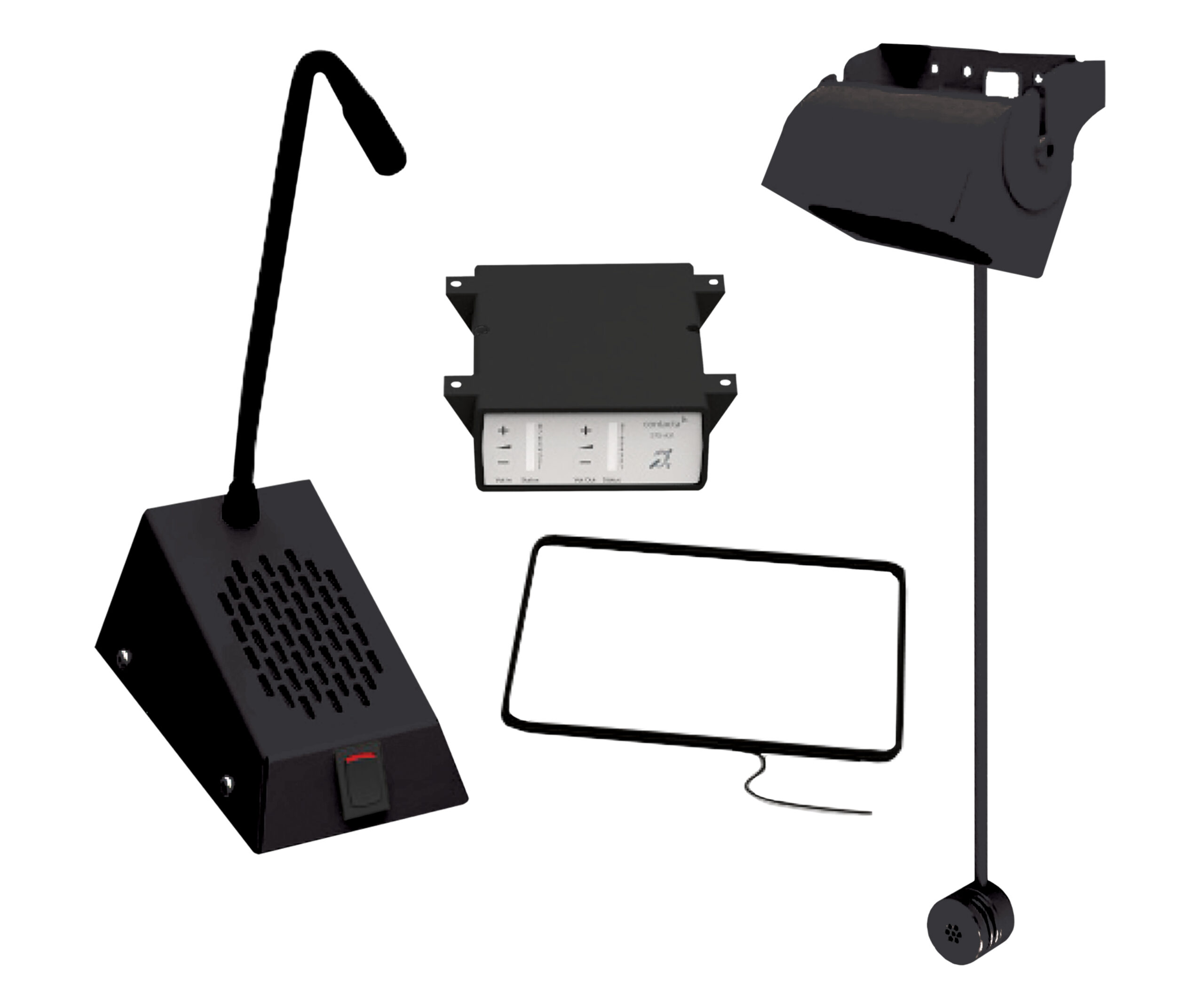 This Window Intercom System Features An Overhead Speaker And Window Mounted Microphone For The Customer Side, Along With The Combined Microphone & Speaker Unit With An Adjustable Neck And Three-Way Mute Switch. The Kit Also Comes With An Under-The-Counter Hearing Loop Aerial